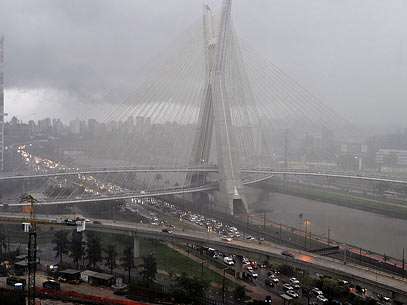 Marginal Pinheiros tem trânsito intenso no fim da tarde desta sexta-feira, na região do Brooklin Novo, em São Paulo. A capital paulista entrou em estado de atenção às 17h45.